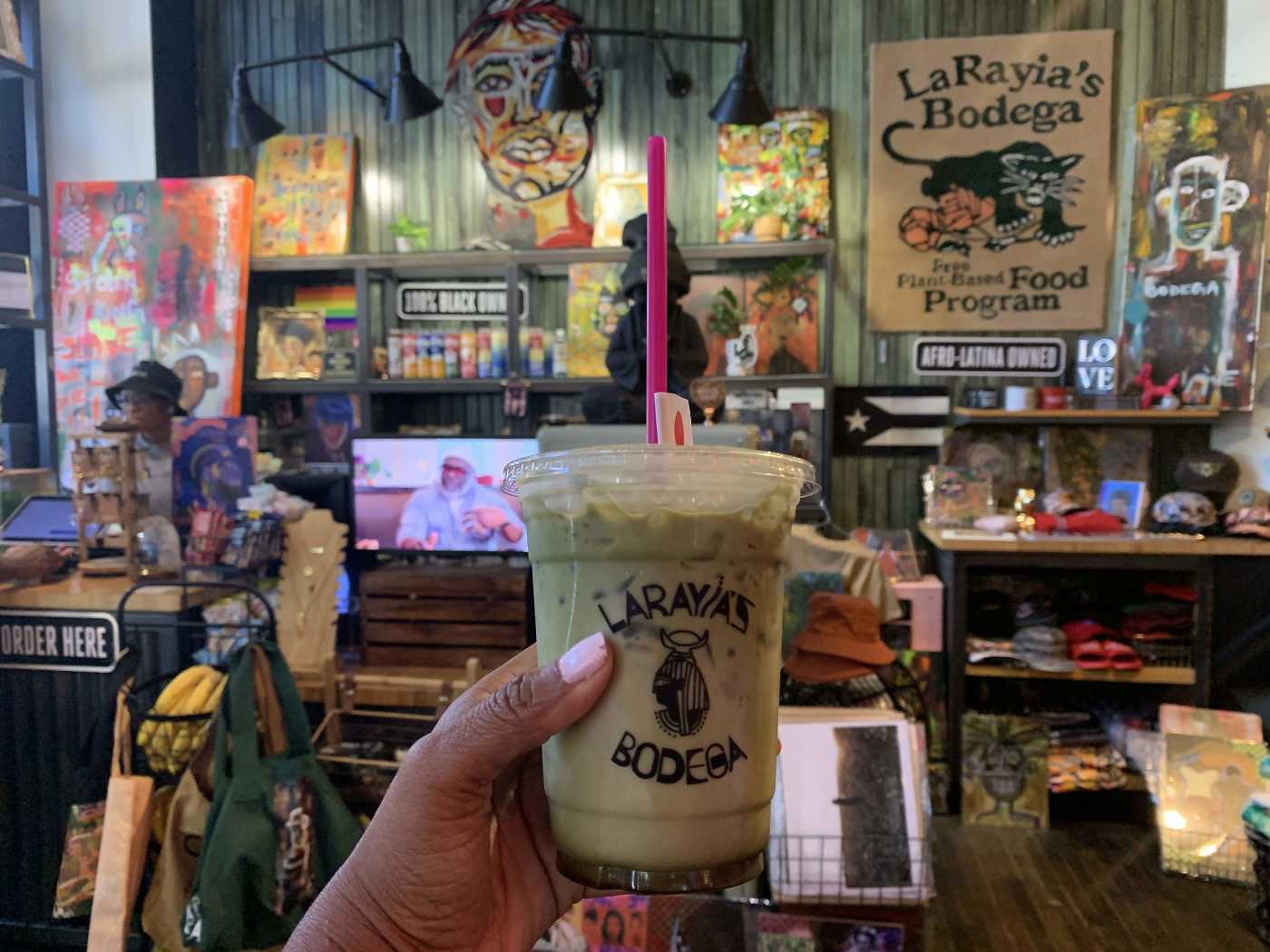 "LaRayia's Bodega in Ponce City Market offers tasty vegan bites and drinks in a cool stall decorated with plants and rapper-inspired art. It’s an easy stop for an on-the-go light lunch when you’re in Old Fourth Ward—because the smoothies and matchas are incredibly delicious. Plus, they make well-balanced creations you don't see everyday like the thick and sweet Outkast with cinnamon apples, nutmeg, and filling oatmeal. And when you need an energy kick, try their matchas, like the silky sweet Yoko Ono with lavender, maple, and oat milk." - nina reeder, jacinta howard