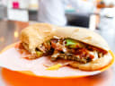 "The sandwiches at Las Tortas Perronas seem to defy the laws of physics, or at least the laws of how many ingredients one sandwich should contain. The Chilanga torta here gets loaded with at least six kinds of meat, as well as cheese, and another six toppings like guacamole and refried beans, all squished between soft bolillo bread. For all the jamón, salchicha, and breaded skirt steak on the torta, it’s a miracle you don’t have to unhinge your jaw to eat this. Every bite tastes rich, slightly spicy, and light—especially if you get extra salsa poured on top." - chelsea thomas, gianni greene