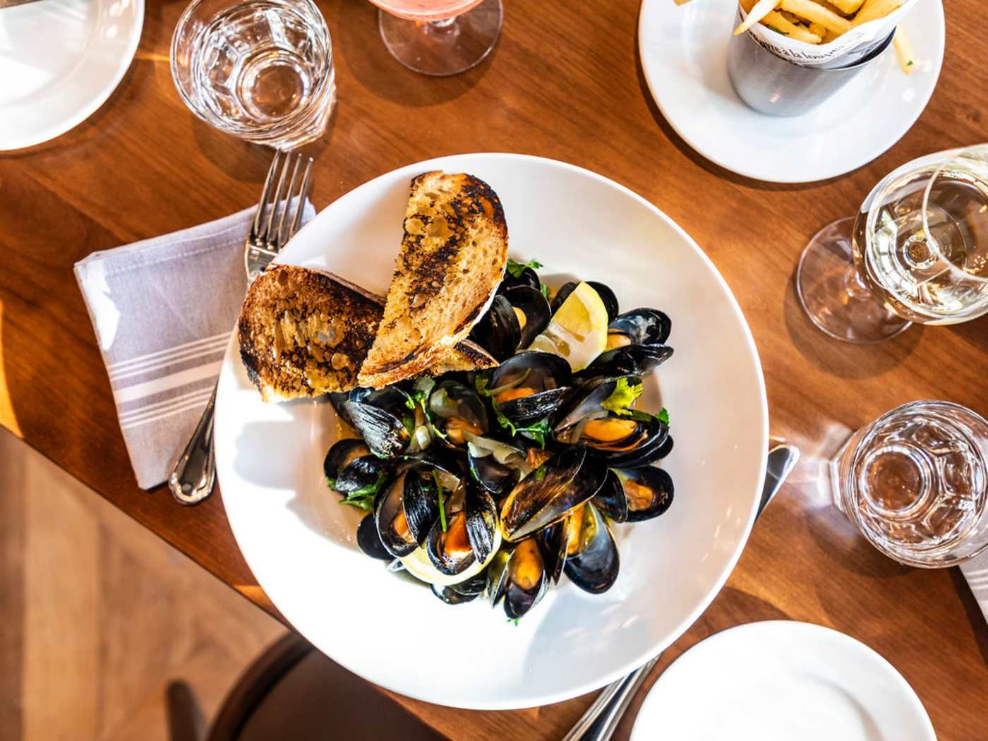 Love this restaurant! My mom and sisters threw my 40th birthday party in the San Mateo location, which closed soon after the party. My sisters and I have sister spa day annually and do dinner at the Santana Row location, but I visited the Menlo Park location for the first time yesterday in the late afternoon. Although the interior of this restaurant is pretty gorgeous, my son and I couldn't resist a shaded outdoor table, as the weather was perfect. This may have affected the pace of the meal, which, though we enjoyed our leisurely meal, sometimes had us seeking out our waiter, for water and our check. Speaking of the bill, I want to shout out the InKind app, which sent a welcome gift of $50 off of our meal. I like that you didn't need to present a gift card, or coupon, but applied discount directly as we entered the check #. The discount made our evening a bargain. We started with margaritas , pineapple for me and prickly pear for Kyle. We went indulgent with the apps, his steak tartare was very rich and unctuous and I could only have a little of the cheese fondue, because the combination of creamy, strong warm cheese was a little too heavy on the blue cheese for my taste, but the fresh bread took me back to the boulangeries in Paris. I can never resist moules frites and Left Bank's version with Pernod, shallot and spinach is excellent, as are their crispy frites. June is not a month with an r, which I think applies to all seafood but especially oysters, something about red tides and toxins, but I live on the edge ( although the three unopened mussels remained untouched, because I am not THAT crazy. My son loved his Petrale sole special, although he was also pretty full from the steak tartare and fondue. We took home a tart citron in honor of my mother's birthday. I got a little weepy and nostalgic, but she was smiling down upon all of us, pleased at being fondly feted in grand style. my son got a little impatient as we waited for the bull, but he's unaccustomed to 2 hour dinners. Luckily we got an early start and he agreed to meandering through downtown Menlo Park to walk off some of our considerable calorie consumption. Love you mom and thank you for everything, wish we could meet you in Paris this summer, though dinner at Left Bank is kind of a dupe.