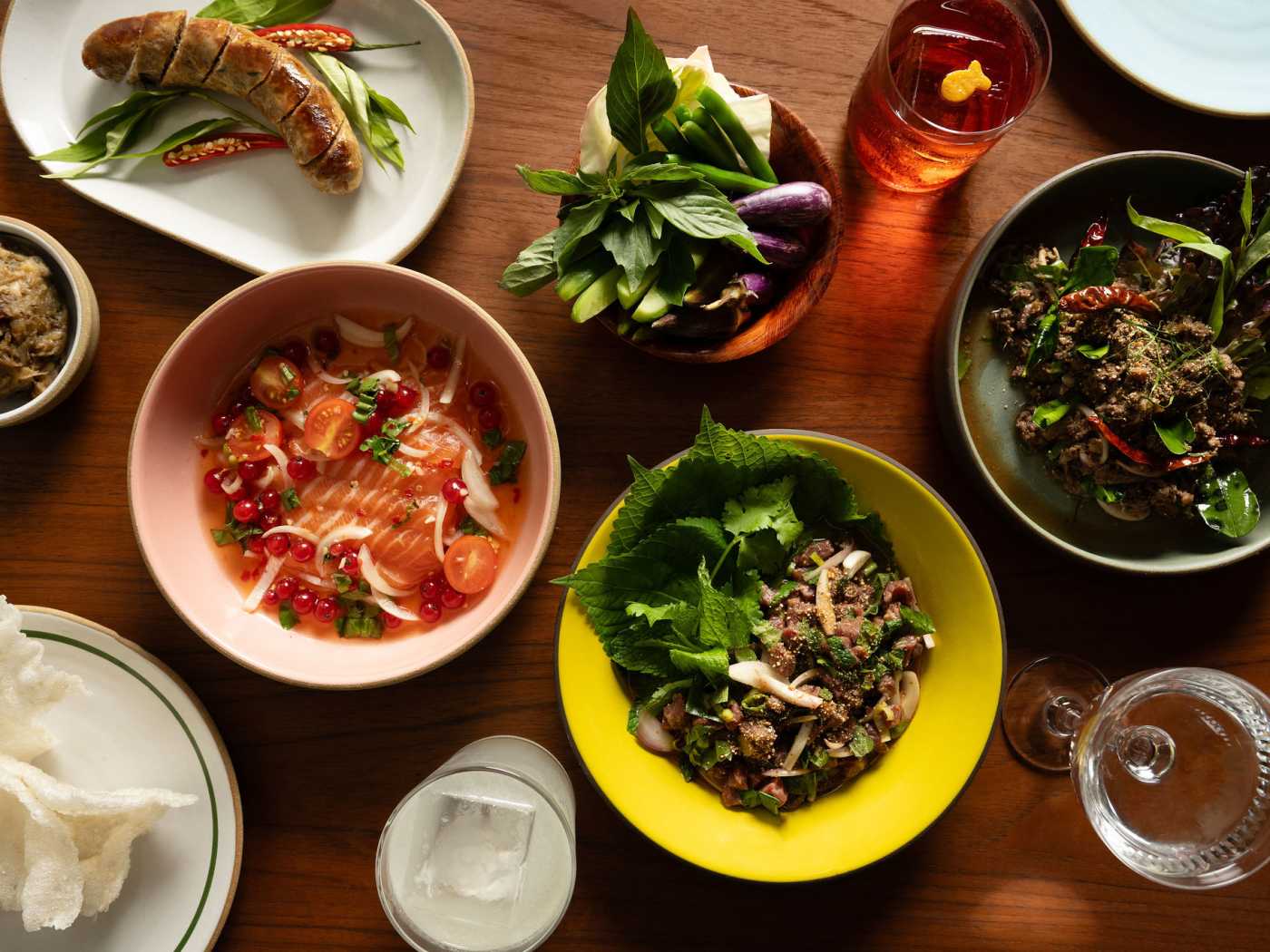 "A vibey new bar and restaurant inspired by 1970s Bangkok, this spot won me over with the crab and durian curry, the undisputed champion of our table. The velvety orange sauce tames the sometimes divisive durian, whose almost-floral sweetness feels like a natural fit with the curry’s aromatics, and the textures sing: juicy shreds of crab juxtaposed with shreddy strands of spaghetti squash." - Nadia Chaudhury