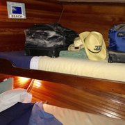 There's a reason pictures of the cabins are not shown. Seriously uncomfortable and smelly. 12 people/6 cabins share one bathroom/shower which is essentially a portapotty with a shower head. Captain Noah was super friendly, staff was great. Accommodations are not at all accommodating. We received four towels and four washcloths for two people for a once week cruise. Same sheets stay on the bed for the entire week. No cleaning except the toilets. The cooks were nice, but the kitchen was swarming with flies. There were old hot, scratchy wool blankets on the beds in the Bahamas. No air conditioning, no air moving. Only nightlight type lighting in the cabins. Eating is done in a room right over the motor and its hot. There's no escaping the mosquitos, heat, or stench of the toilets. We literally wrapped a blanket around the sink pipe to keep the smell down bc it was keeping us awake. For the same price we could have taken an Alaskan Cruise. Don't stay on this ship. Day cruise in cool weather, sure - if you are able bodied and can climb up and down the ladder to the bathroom. Don't take elders. It's not safe.