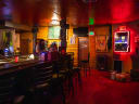 The interior of Lion's Lair doesn't go the whole nine when entertaining the King of the Jungle theme, unfortunately. I mean, aside from the homage to a circus and lion in the front, the inside just has one lion head painting hanging on of their walls. Oh, and they have LEAPORD PRINT curtains on the stage. (It was such a disappointment.) However, they do redeem themselves with their illuminating Pabst sign, sketchy bathrooms with urinals covered in stickers, and throwback wood paneling.