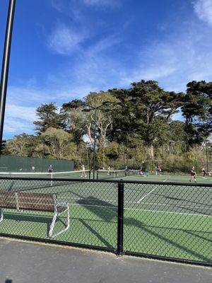 I like playing here because (i) you get to see so many other bay area people enjoying tennis in one (attractive, tree-filled) setting, (ii) parking is easy, and (iii) court-time is reasonably easy to obtain.