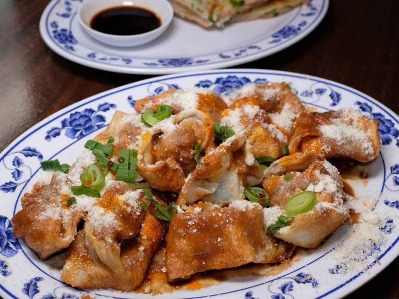 I'm not a fan of scallion pancakes, but my very picky six year old twin granddaughters loved them, and everyone else gave them a thumbs up. The fried wontons were amazing, super crispy and somewhat sweet, and I would go back just for them. The scallop & pork soup dumplings were yummy. The big surprise was the cold wheat gluten (Shanghai Kai Fu). I was doubtful others would like it, but I think it was the most flavorful dish we had, and it was finished off no problem. Another surprise was the Hong Kong style hot sour soup, which our waiter informed us had pig intestines and blood in it. Two of us went for it, and it was so good, super spicy, and all four adults tried it & liked it. The blood was like small pieces of liver, but tasteless, and the pig intestine was simply like pork. We also had salt & pepper pork chops, which were rather small pieces and very fatty, but tasty. The only dish that wasn't gobbled up was the spicy beef with shredded tofu, which was not spicy enough for us, and somehow missed the mark in flavor. In sum, I can't wait to go back.