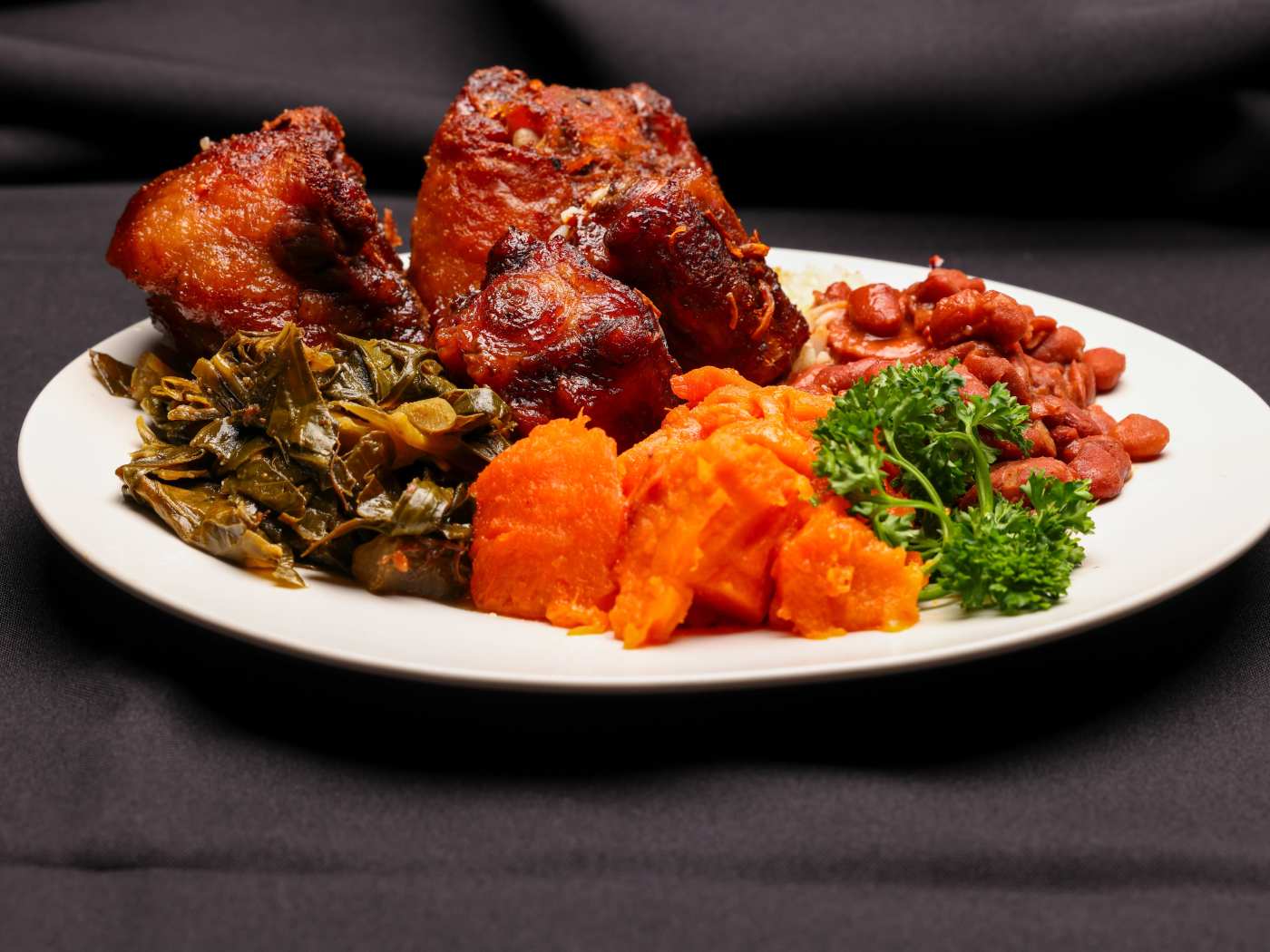 First, the Mac & Cheese was immediately returned to the kitchen. The flavor was off and the cheese wasn't fully melted, like it wasn't even baked. I tasted my husband's yam, sweet like candy - Yes, YAM not yamS, because it was one chunk of yam in a bowl of sweet juice - and he tasted my collards. So, he got collards in exchange for the Mac and I ordered my own yam chunk. The red beans were not cooked all the way and crunchy.