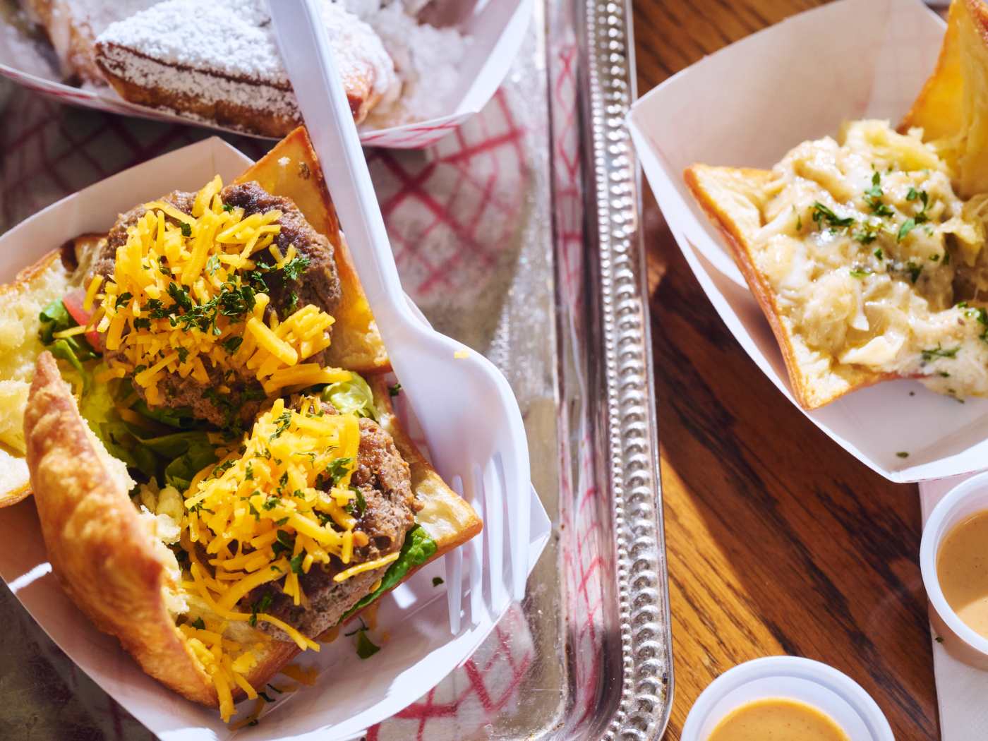 "Offers crab beignet, a savory twist on the sweet beignet using crab for a seafood-forward fritter." - Clair Lorell