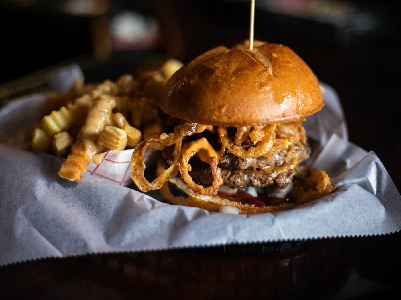 "The over-the-top burgers at Lucky’s come with a wide variety of add-ons, including fried pickles, peanut butter and jelly, pierogies, and so much more. Toasted and buttered Liscio’s rolls make for a great delivery system for these messy, oversized burgers." - Maddy Sweitzer-Lamme
