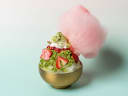 A heaping double scoop of vanilla gelato topped with shaved snow, strawberry syrup, fresh + freeze dried strawberries, bars of cheesecake, whipped cream, and freshly spun cotton candy. Since they were out some of the ingredients, they had to sub the strawberry syrup, some fruits, and plain whipped cream.