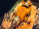 The Chobster’s true name. Now you know, so don’t order it by accident. But if you’ve been influenced by Martha Stewart’s viral Chobster post and must know more, here’s what to expect. A whole chicken arrives at your table wearing lobster armor. The golden appendages are whisked away, leaving the naked chicken, which is then carved tableside. A lobster head is extracted from its cavity, pressed for a few drops of juice, and a bisque whisked in front of you. The chicken is tender; the lobster perfectly poached, and, when it’s eventually served, you’ll get about three slices of each on your plate. If you end up here, order something less exciting.
