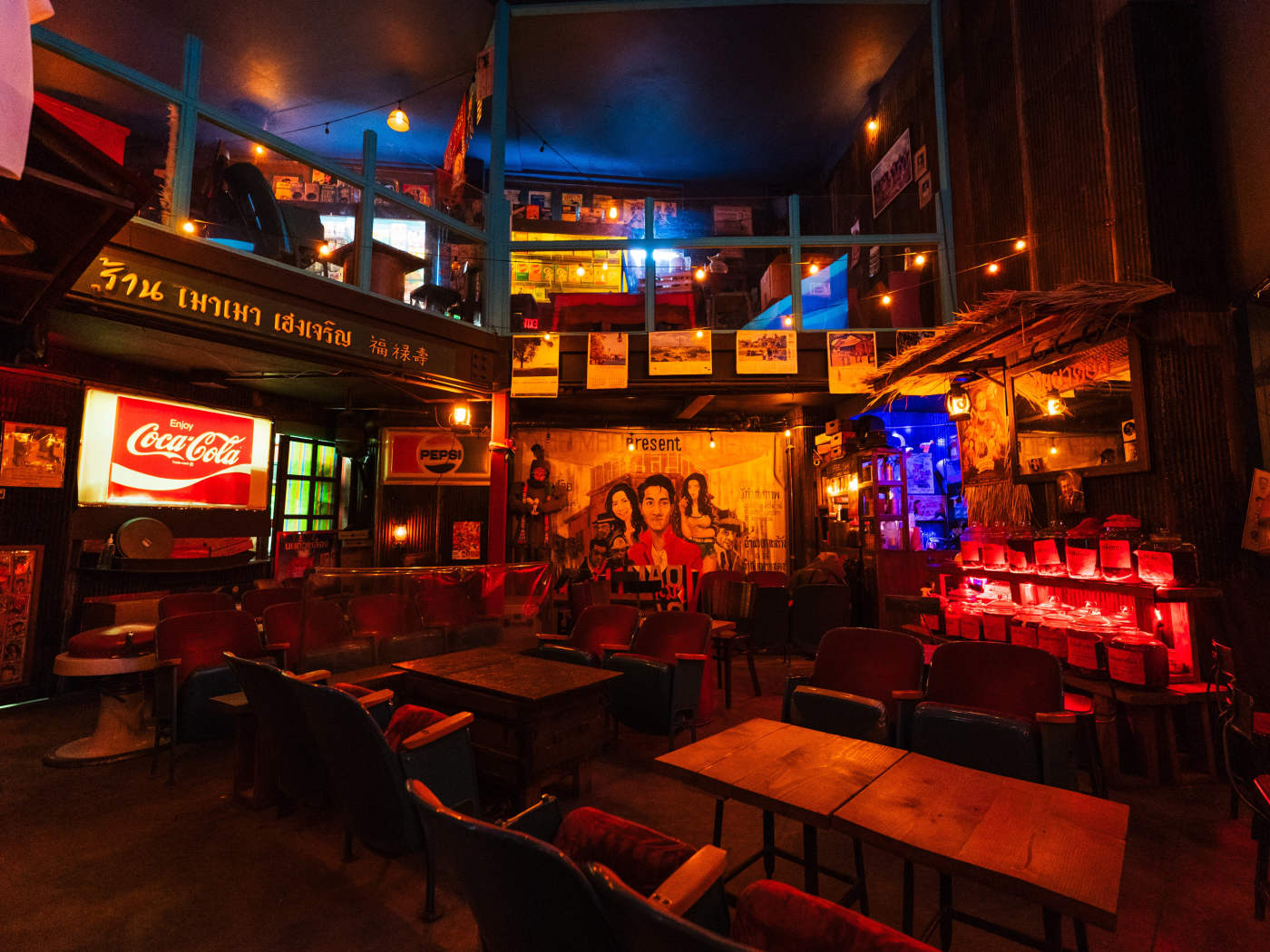 "The restaurant is a lot of things: A place where you can sit in movie theater seats hunched over a suitcase acting as a table, eating laab gai sap on a paper plate while various Thai movies play on screen. It’s not a movie theater, per se, in that tables don’t all face toward the screen but the Thai cinema theme makes the atmosphere unlike any other spot in the city — a place for a snack with a beer, rather than a full-blown dinner." - Emma Orlow