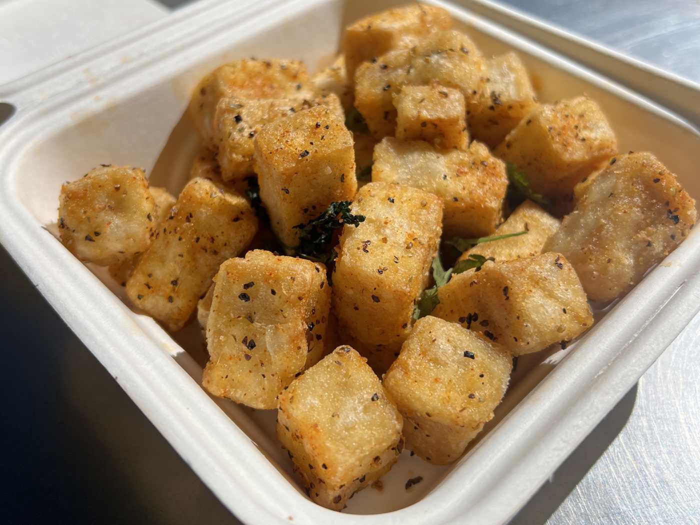 "Tofu Tots While this local Hawaiian chain has two outposts in the stadium, the one by The ‘Pen is far better. Their adobo-spiced tofu tots are a lovely little departure from the chicken tender chokehold at T-Mobile Park—and work as a perfect snack whether you’re vegetarian or not. Don’t forget to add on a dangerously slurpable strawberry frosé." - Aimee Rizzo