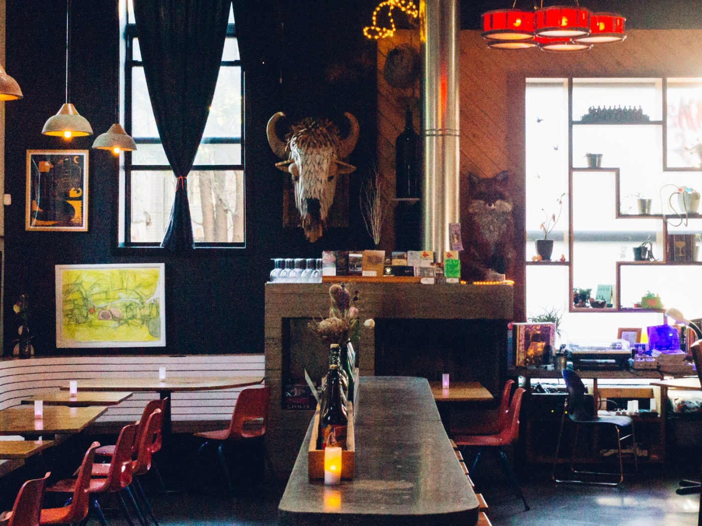 "One too many drinks in at your last party, you felt inspired and announced, “I’m going to open a bar one day, fill it with everything we like, and the people will flock to it, deeming me lord of Fishtown and purveyor of all that is good.” And though no one took you too seriously, you’ll realize when you get to Martha that someone already got the jump on you. Martha is a bar/restaurant on the border of Fishtown and Kensington that looks like if someone bought a small warehouse and then just filled it with eclectic furniture that they got from a few estate sales and called it a day. There are worn-in couches and armchairs next to an old-fashioned stove fireplace, and a bunch of mismatched tables lined up around the perimeter. Projectors display movies from the 1960s on one wall, and the extensive food and drink menu on another. In the middle of the space is a huge bar with at least 25 seats that always seems to be full of friends meeting up for cocktails (most of which are less than $12) and a hoagie waffle topped with salami, provolone, and long hot pesto that’s just as delicious as it sounds. Other than the hoagie waffle, Martha’s food menu is full of bar snacks that are surprisingly creative - like the magic mushrooms, which is a bowl of maple maitake mushrooms over squash grits and topped with their homemade hot sauce. There’s also a whole section of hoagies (our favorite is the perky turkey), and a mix-and-match charcuterie plate that pairs well with pretty much any third drink of the night. It’s the kind of food you can easily split with a date or a couple of friends. Stop by for dinner at the bar and if it’s a season where being outside isn’t dangerous to your health, grab another drink and head out back to play some bocce ball on the huge patio. If you can think of a better concept for a bar, we’ll buy it from you." - Sydney McElwee