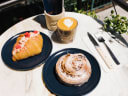Por último, cuando pedí el pan para llevar (no me lo pude terminar porque me empalagué) me lo aventaron literal en una bolsa, ni siquiera lo colocan en un empaque para que no se bata todo. (Esperaría más debido al concepto que te venden).