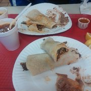Juicy fried chicken, steak, shrimp, salad bar, cornbread