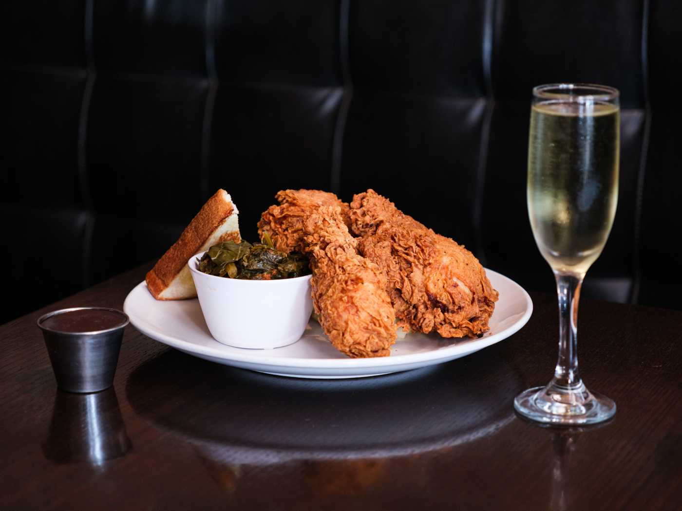 "Max serves up its fried chicken in several ways, including a gluten-free option, making sure those with diet restrictions don’t miss out. Main events include the three-piece meal served with mashed potatoes, collard greens, and Texas toast with your choice of chipotle honey or hot sauce for $24; the spicy H-Town Hot-style chicken that’s dipped in hot cayenne butter; and the hot chicken sandwich, which is topped with kale slaw and lemon aioli. Craving breakfast? Go for the jalapeño-buttermilk marinated chicken tenders with a Belgian-style waffle, or the honey butter chicken benedict, with a poached egg atop a flaky biscuit with sausage gravy." - Brittany Britto Garley