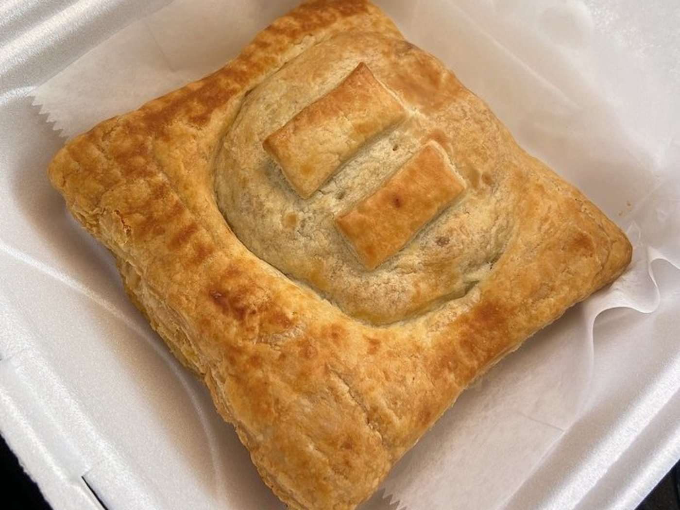 Like I said, I ordered three pies. A lamb curry, a chicken curry, and a steak and kidney pie (which I asked, "Kidney means kidney beans, right?" and the woman kindly responded, "No, it's veal kidney." Hm, "Okay, cool. I've never had that. Let's just do it!"). I could've eaten it in the store, but chose to take the pies home as I had just eaten. The woman took the time to mark all of the takeaway boxes with the names of each pie, despite each pie having a symbol baked on top to help differentiate (there's a key on the menu). By the time I got home, the pies were a little cool, so I just popped them in the air fryer for a few minutes to warm up. Cut each one in half an went to town - HOLY FLAKY, BUTTERY, CRISPY PASTRY GOODNESS. Yeah, the filling was great, but the pastry was even greater. And yeah, it turns out I love me some steak and kidney pie. So much flavor. (By the way, make sure you splurge and get that 0.39 chili sauce. It's a yummy little dip for the pieces of pastry that don't have filling!)