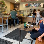 We both ordered lunch specials-- For me, a gyros pita wrap ($4.99), and for my friend, the soulvaki pita wrap ($5.99). They came out wrapped in aluminum foil, tightly rolled into, quite literally, a wrap :P I'm used to the soft, fluffy pita breads folded in the middle, cradling the gyros meat and yummy vegetables, so the thinner, not-so-chewy pita was a surprise and slight disappointment to me. The gyros meat was good, but not super amazing ^^" My friend thought both of our lunches were kind of small, but U think they were enough to satisfy for the price~ Instead of paying at your table, pay at the cash register near the back.