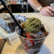 Taiwanese dessert bowls with tofu, taro balls, and tea