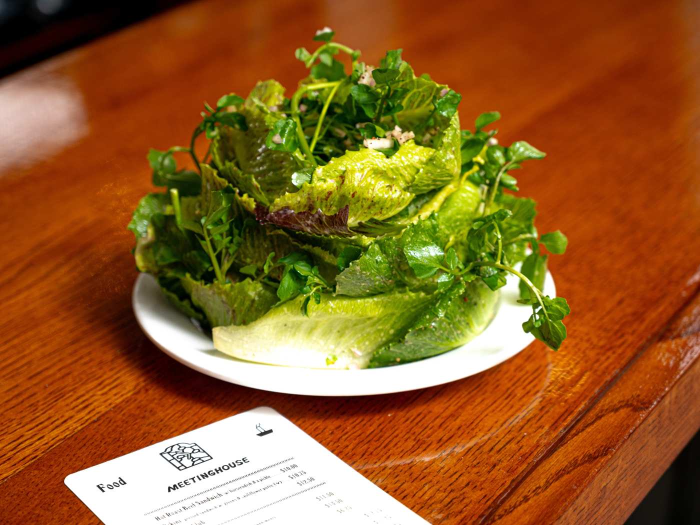 "In our work Slacks, the Infatuation Philly team lovingly refers to this salad as "THEE salad." It looks like a blooming flower on a plate. Or maybe a birthday cake built with a perimeter of crisp romaine. Either way, the center has stacks of tiny leaves and a crown of watercress. And dijon vinaigrette with shallots and chive flecks give the whole thing a refreshing, acidic punch. It’s probably the greenest salad you’ll ever meet." - candis mclean, alison kessler