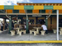 Upon entering the building, there is a small outdoor seating area and a large take away window. The smell of roasted meat and the sounds of fresh lechon being cut into manageable parts greet you as you walk through the door into indoor restaurant.