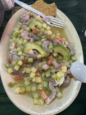 The menu consists of a run-of-the-mill selection of trite Mexican standards, by which I mean seafood cocktail in a glass, or ceviche, or fish tacos, or fried fish. Yet they have managed to draw these basic four plates into a four-page menu. Nothing much innovative, but enough feel-good classics and combination plates that make the Mexican patrons want to break out and serenade with the band! (They could stand to tone the volume down a bit!)