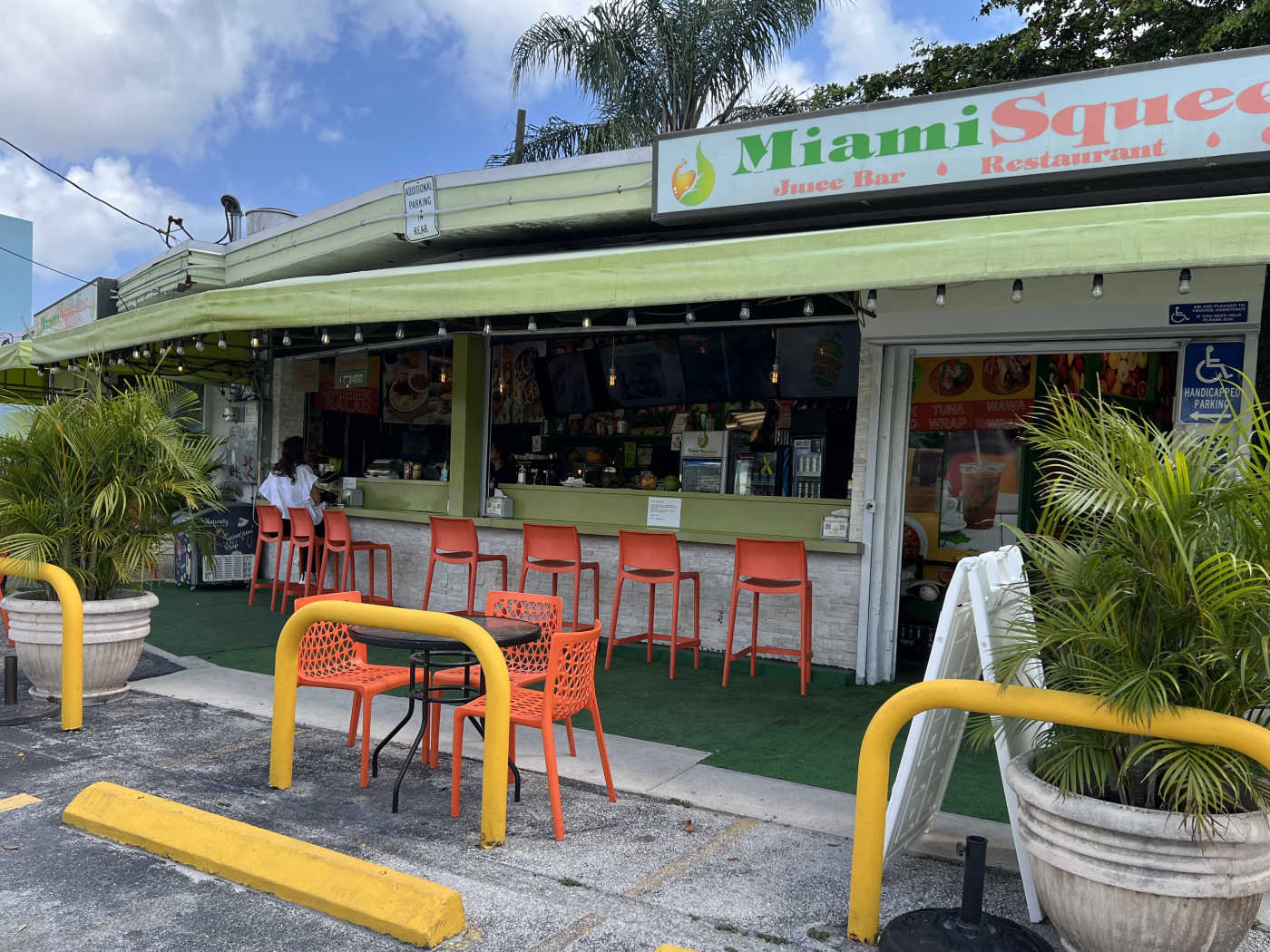 now that i got that out of the way, this place is adorable ! they have a backyard feel, nice greenery, and a swing which really adds to the vibe. their menu offers a great selection of healthy apps, wraps, salads, etc.; smoothies, juices & shots !