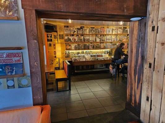 Record shop & coffeehouse with vinyl tables, breakfast & light fare