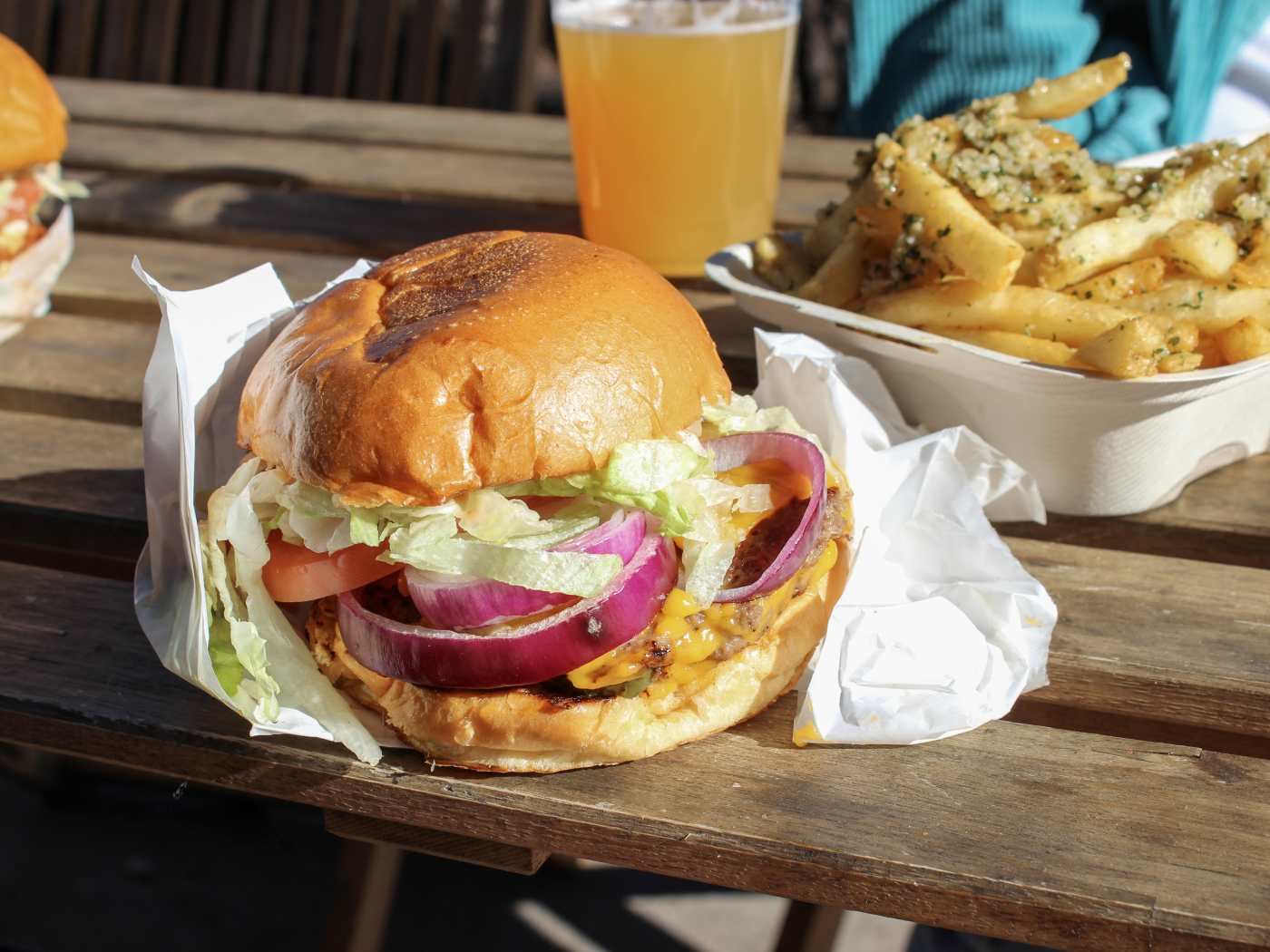 Okay but the starts of the show: brisket? Must order. It's made from upcycled shiitake mushrooms and smoked for four hours in house. I'm the one vegan that generally doesn't like mushrooms, and this was 10/10. We also had the mac and cheese, chicken pesto, Reuben, steak sandwich , burger, and garlic fries. Not a bad bite in the bunch. Oh and the crunch wrap? Good texture, a little spicy, so so delicious