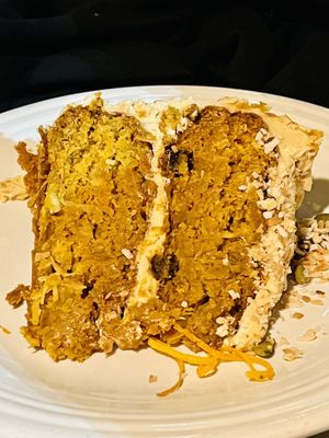 Now my husband got the vegan carrot cake. I want to detail how it tasted because we had odd views on our table. So this is what I heard it's very wet, dense, moist, "healthy " we were trying to figure it out. Maybe they use a brown rice to make the cake and pineapple juice. It's a healthier take on a carrot cake, so don't expect your traditional sugar-filled cake that's not what you're going to get. My husband said he would definitely get it again.