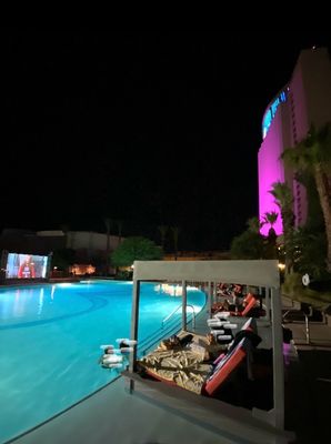 Three pools: wading pool, sandy breach pool, and lazy river. The lazy river has some serious current and inner tubes to go around and around while holding a drink. Friday nights in summer, at 9 PM, they have a Friday night pool party with pink flamingo inner tubes and music. You have to pay to get in, but it is worth it for so much fun!
