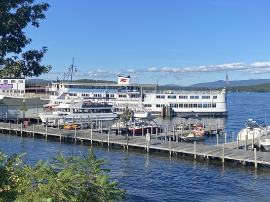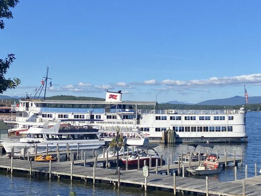 Once boarding, we were told our table number and told he was the only one up front to greet others, so we would need to find our table. We were never told we could start going through the buffet line- so we waited. We saw a waitress with a tray of drinks and asked, and she said we could start getting food when we were ready. We asked if someone took drink orders, and she stated we could help ourselves to iced water (which was almost empty and water had a lot of sediment in it, and was no longer cold), or go to the bar for other drinks, as she was assisting eith a private party.Told another waitress who changed the water and brought fresh iced water. The line for alcoholic drinks was very, very long, and 3 staff members behind the bar, but only 1 bartender, taking and fulfilling orders the buffet had a garden salad with 2 dressing choices, rolls and frozen butter pats, pasta salad, roasted potatoes, vegan rice, chicken and BBQ tenderloin. The food was ok- nothing to rave about, for the price. Dessert wasc2 choices of cookies that were in a clump- all stuck together- very difficult to get apart- were small pieces and crumbs by the time you attempted to get them apart. And pineapple dole whip- like ice cream, that was good. They also offered hot tea and coffee. They had 2 seperate musicians on 1st and 2nd floor- the female singer in the band on 1st floor wasn't very good and the guitar player on 2nd floor was ok, but there wad no place to sit that wasn't occupied b6 people who ate on the 2nd floor. The scenery was beautiful along the lake, but there was no narration about anything during this cruise. It was a rainy night, so the sunset wasn't visible- very cloudy- not their fault. Also, if their are smokers in your party- be aware- there is no smoking or vaping allowed on the boat. The price was a little high- $76.00 for the meal and cruise, with an $8.00 fee and tax- so it was $85.00 per person. That is in addition to the $2.00 per hour for parking on the street, or $10.00 in a few nearby lots. I am glad we experienced it, but we probably won't do it again.