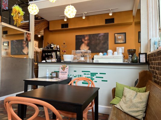 I chose Murray Street Coffee Shop as the first in the Deep Ellum leg of my Coffee Tour. Although I had seen pictures online, they didn't capture the homey vibe I walked into on a cold Monday morning. Couches and chairs in front of the coffee bar were arranged like a living room. People were sitting around and chatting over their cups of caffeine. As I walked in, the barista greeted me.