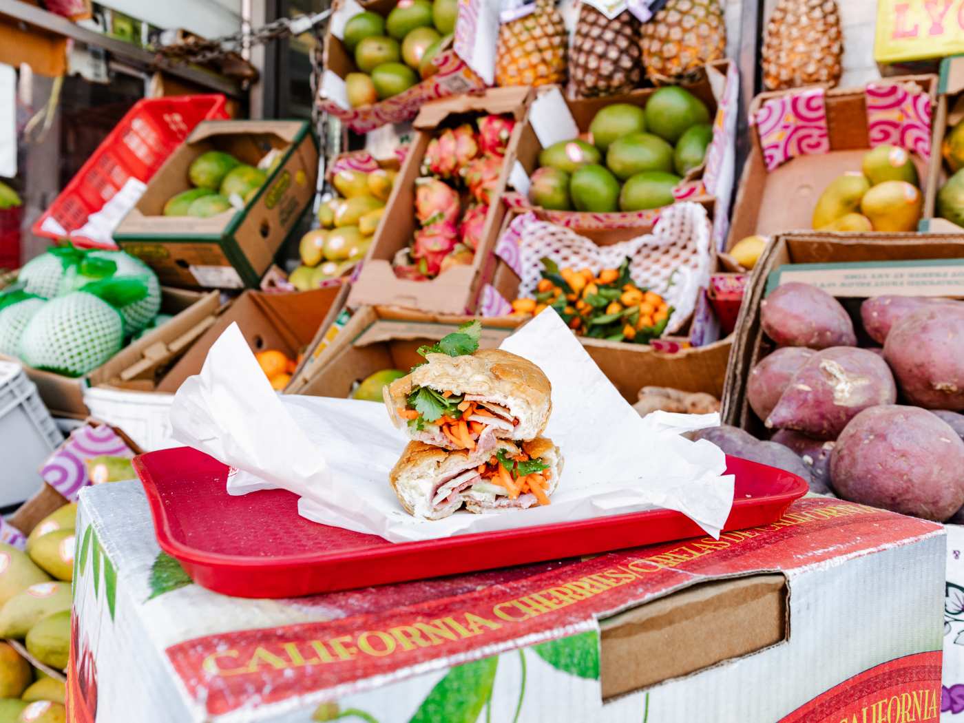 "The Meal: Bánh Mì Dac Biet, $6 It’s surprisingly hard to find a good bánh mì in LA proper (of course, that’s no issue over in Westminster). That’s why My Dung is so treasured. They’re located in a tiny market stall on Ord Street, where you’ll be greeted by a vibrant array of produce, a huge, hand-painted menu, and one of the warmest shop owners in town. Make no mistake, these aren’t fancied up bánh mì or filled with truffle mayonnaise (yes, it’s a real thing)—just straightforward baguettes plus accouterments and your choice of either grilled pork, cold cuts and pâté, or sardines. We’re partial to the pâté, mostly because it makes us feel like a posh little prince." - brant cox, sylvio martins