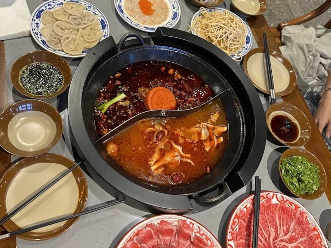 The food definitely deserves special praise. The thinly sliced rib beef was perfectly cut—just a few seconds in the pot and it turned incredibly tender and flavorful. The duck intestines were wonderfully crispy and fresh, with no unpleasant smell at all. The shrimp were tender, juicy, and clearly very fresh. Overall, the quality of the meat was excellent and you could really taste the freshness.