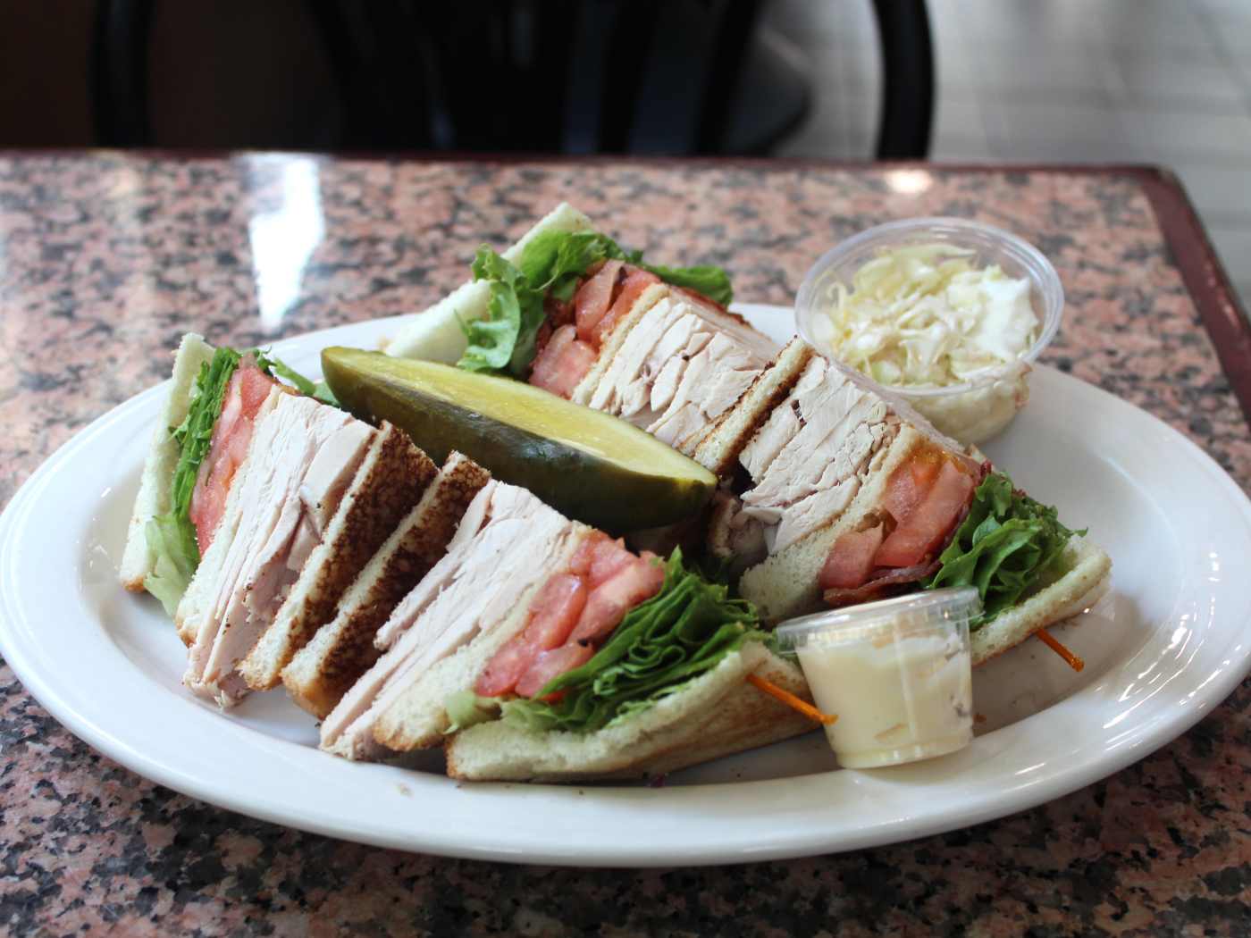 Ordered a hamburger, with the menu price of $13. Underneath the words "deluxe hamburger includes fries, lettuce, pickle, coleslaw and tomato".