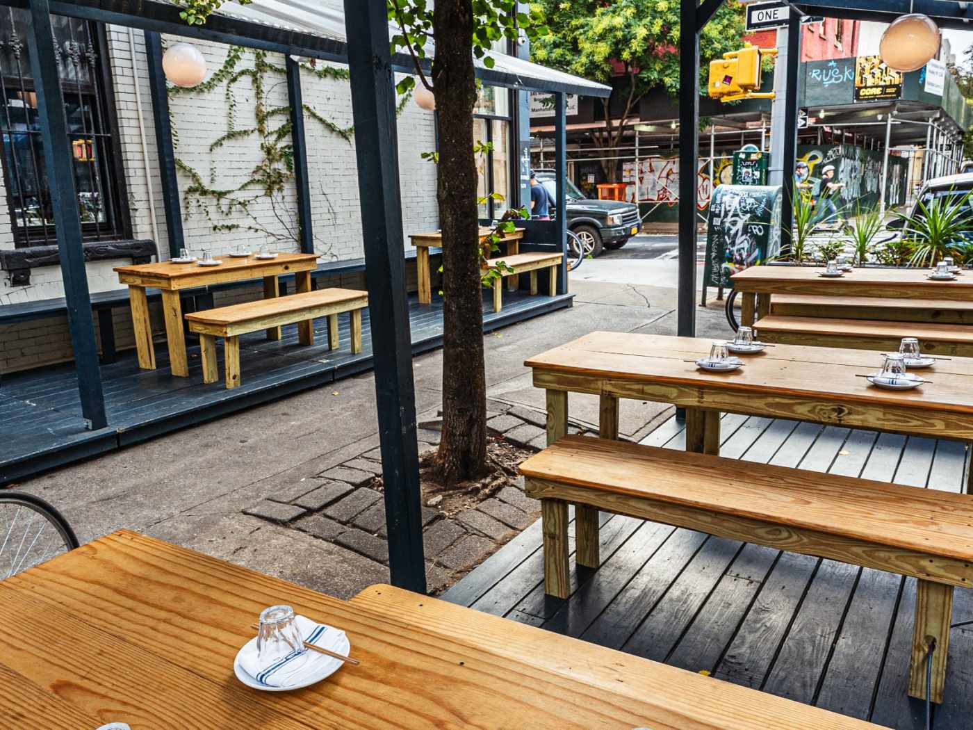 Nite Nite is best used as a casual meeting place for when you don’t want to put in much effort and still have a great meal. Think of it as a stylish backdrop for a fun hang that won’t require much planning, fighting for a reservation, or money. You can drop in for a snack on a weeknight, or celebrate something special with a Telfar bag tucked under the patio tables outside.