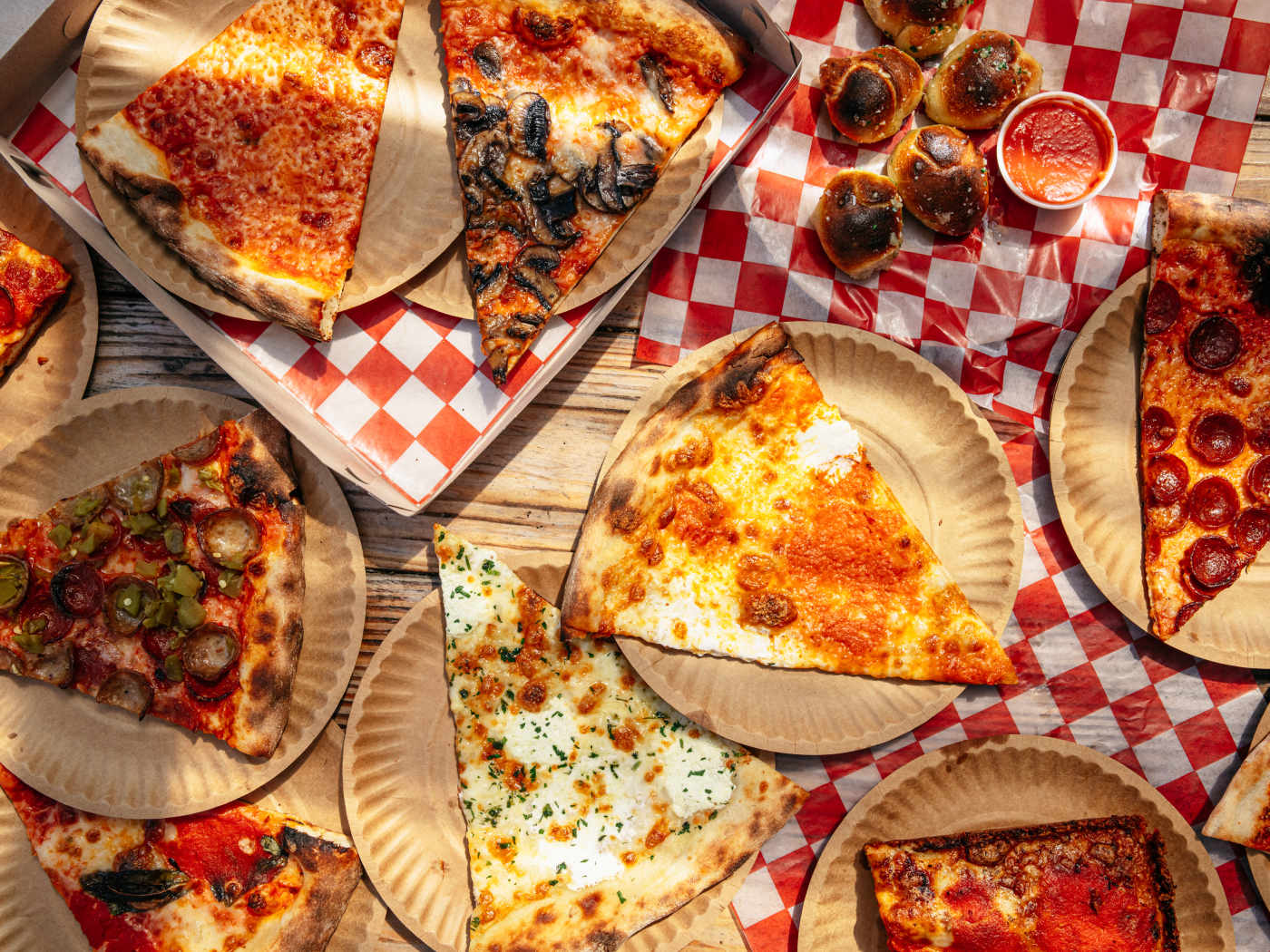 Classic NY-style slices with sourdough crust and fresh ingredients