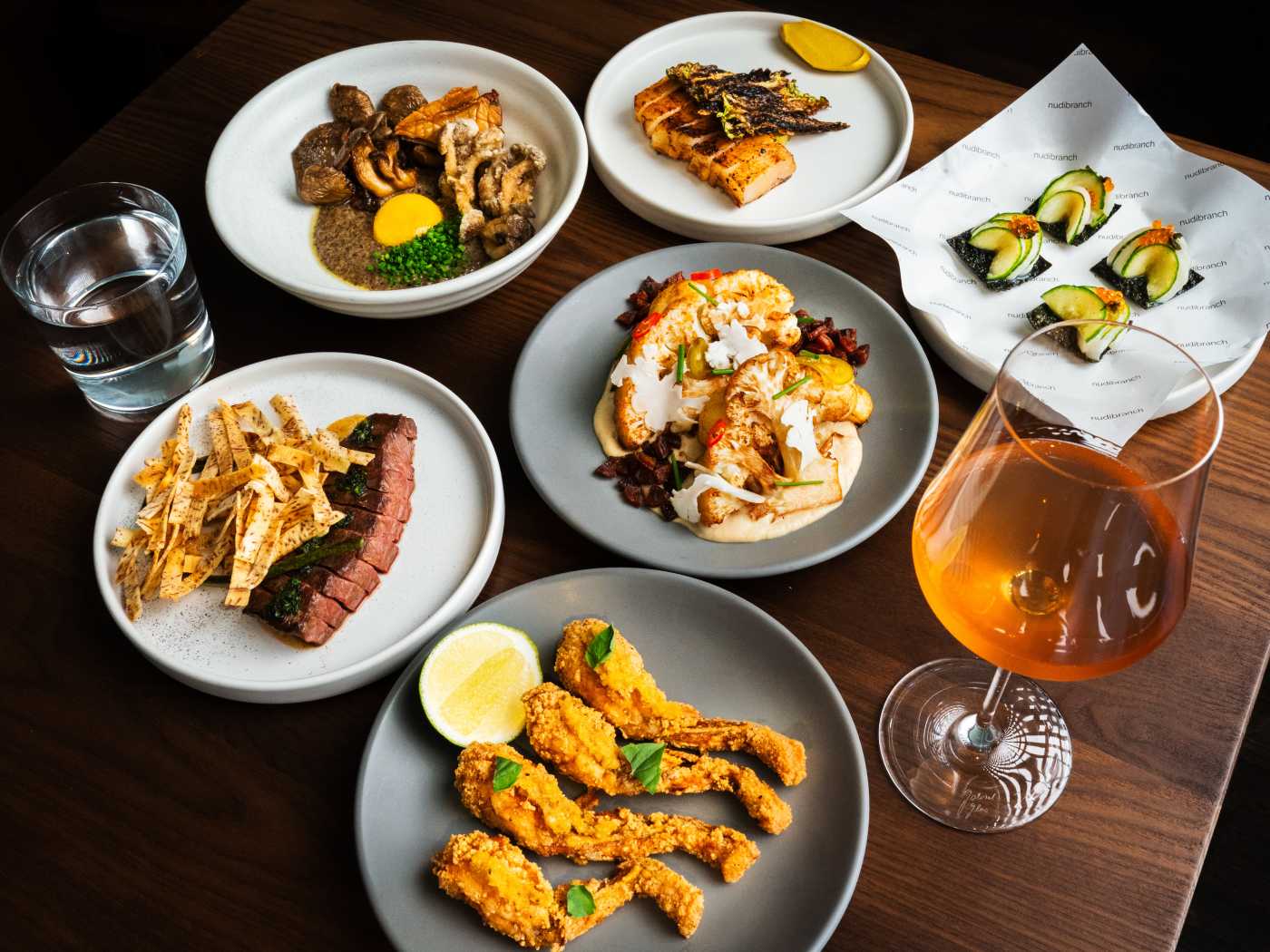 "Chefs Matthew Lee and Jeff Kim are behind the East Village's well-loved Nudibranch. The food is contemporary with strong Asian influences along with a few Spanish elements making an appearance. Portions lean dainty, but nobody seems to care, as they're all nibbling off each other's plates, family style.Begin with fried frog legs finished with bright galangal and lemongrass, then anchor the meal with a golden and crisp dry-aged branzino with Korean sweet potato and beurre blanc and a side of spicy cucumber kimchi. The signature mushroom dish has been on the menu since day one. The rich and creamy masala chai tres leches cake is a delightful way to end your meal." - Michelin Inspector