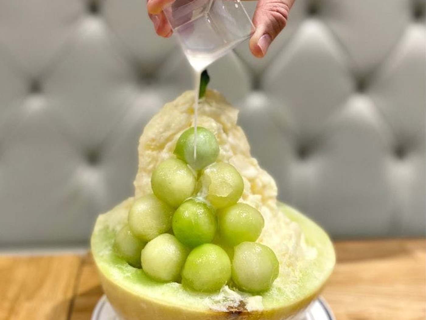 "Very aesthetically focused presentations, such as a mango-melon shaved ice served in a hollowed honeydew and topped with melon spheres. Offerings include classic strawberry; a green-tea option paired with red bean and mochi; a nutty injelomi (roasted soybean powder) flavor; and an Oreo tiramisu served with a side of espresso. The shaved ice arrives in delicate ribbons and a frozen, milky base that provides significant creaminess." - Kat Thompson