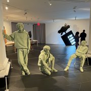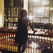 The café has a railroad layout. The larger front room is divided like a paper folded hotdog style. There is the barista's bar on the left, and two-seater tables clinging to the right. The bar side is roomier than the table side, emphasizing whose domain this is. The walls are the shade of parchment paper and scattered with frames, gold and dark brown. A few of them hold illustrated portraits of posh foxes in renaissance clothing, but most embrace bare wall. Golden semi-opaque lamps hang over the bar. No which one is alike, but the shapes seem like friends and emit a similar warm light. It's comfortingly dim inside, not so bright where everything becomes ugly but an improvement from the light in, say, a typical NY apartment, which may be why so many of its patrons are working on their laptops here instead of at home. Whenever a bus passes by on the street, it fills the entire storefront window and the café briefly darkens.