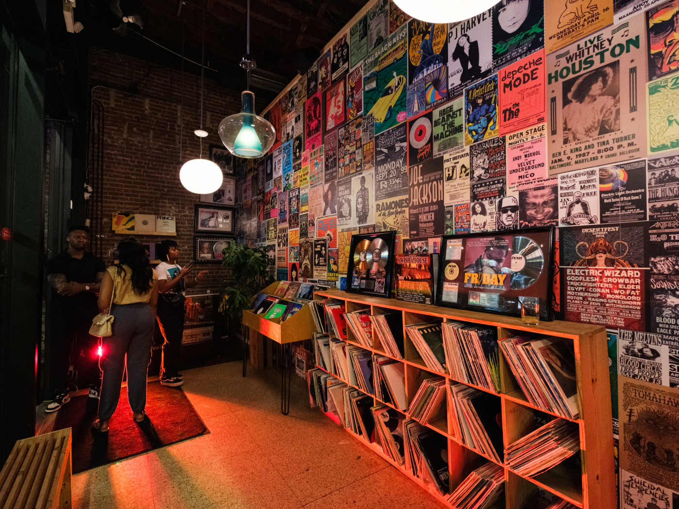 Vinyl shop speakeasy with music-themed cocktails & DJs