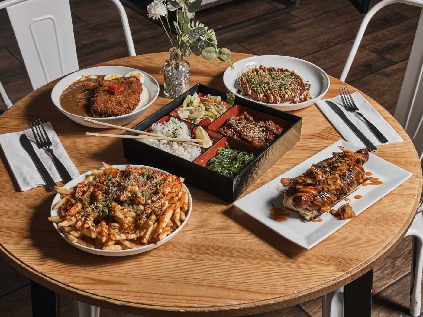 - Omusoba: I got this dish, it was really good! They bring it out fresh, and and flavors are amazing but not overwhelming at the same time. The presentation was adorable.