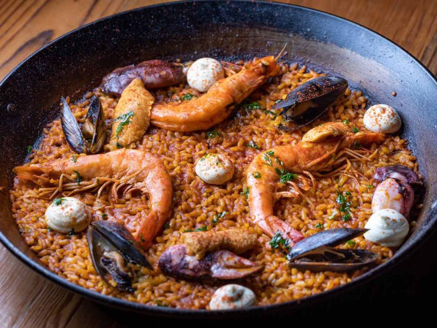 "The tapas at this modern spot in Highland Park can be hit or miss, but the paella (and goblet-sized gin tonics) make us happier than a (Spanish?) clam. From the four varieties to choose from, the mariscos paella is our favorite with its big prawns, tender squid, and dollops of tangy aioli that moisten up the socarrat. It’s that thin, crackly crust that Otoño gets right every time, giving every spoonful all the burnt, crispy bits we want." - sylvio martins