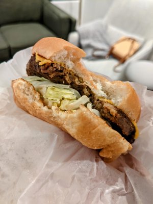 "P. Terry’s is Austin’s answer to In-N-Out, if the drive-thru burger chain got lost in a Jetsons rerun and decided to model its buildings after a 1960s version of the future. This original location—right near Zilker Park—is a bit of an exception. It’s less stylized, with a walk-up window that’s perfect for grabbing a quick bite after a round of frisbee golf or a plunge into Barton Springs. The menu is straightforward: burgers, fries, shakes, cookies, plus a few vegetarian and chicken options. The burger is exactly what you want from a fast food spot—juicy, griddled, and stacked with a thick layer of iceberg lettuce that provides its iconic combination of crunch and cool. The fries are a bit more divisive. Whether you love them or hate them mostly depends on how fast you eat them. Fresh from the window to your passenger seat, they’re warm, crispy, and well-seasoned. Give them 10 minutes, though, and they start to lean soggy and sad. Think of it as a reminder that sometimes patience doesn’t pay off. You’re probably not planning your night around a trip to P. Terry’s—and if you are, you’ve got a very specific vision we deeply respect. For everyone else, it’s a solid burger with local charm and a welcome upgrade from the usual fast food options. photo credit: P. Terry's" - Nicolai McCrary