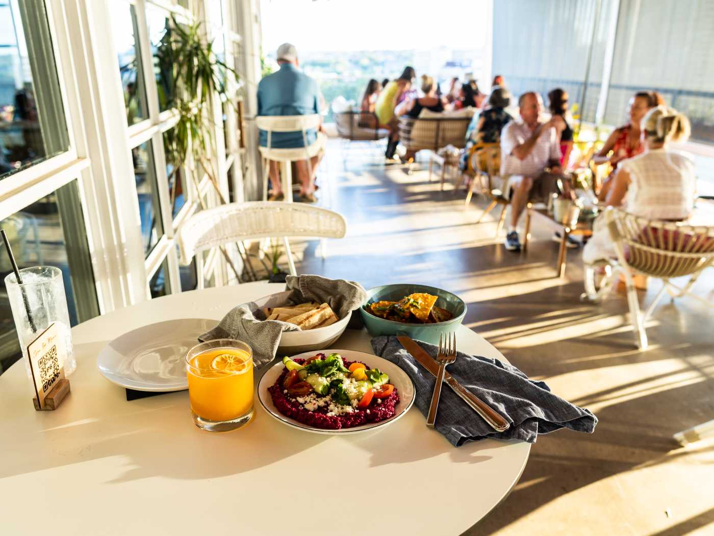 Mediterranean plates & cocktails with stunning river & sunset views