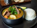 This hearty beef soup is deceiving to the eyes. The foggy broth only shows two pieces of beef floating about. But once you swirl your spoon around, you feel enough meat, carrots, and potatoes to last you an extra day. It’s an all-around excellent soup.