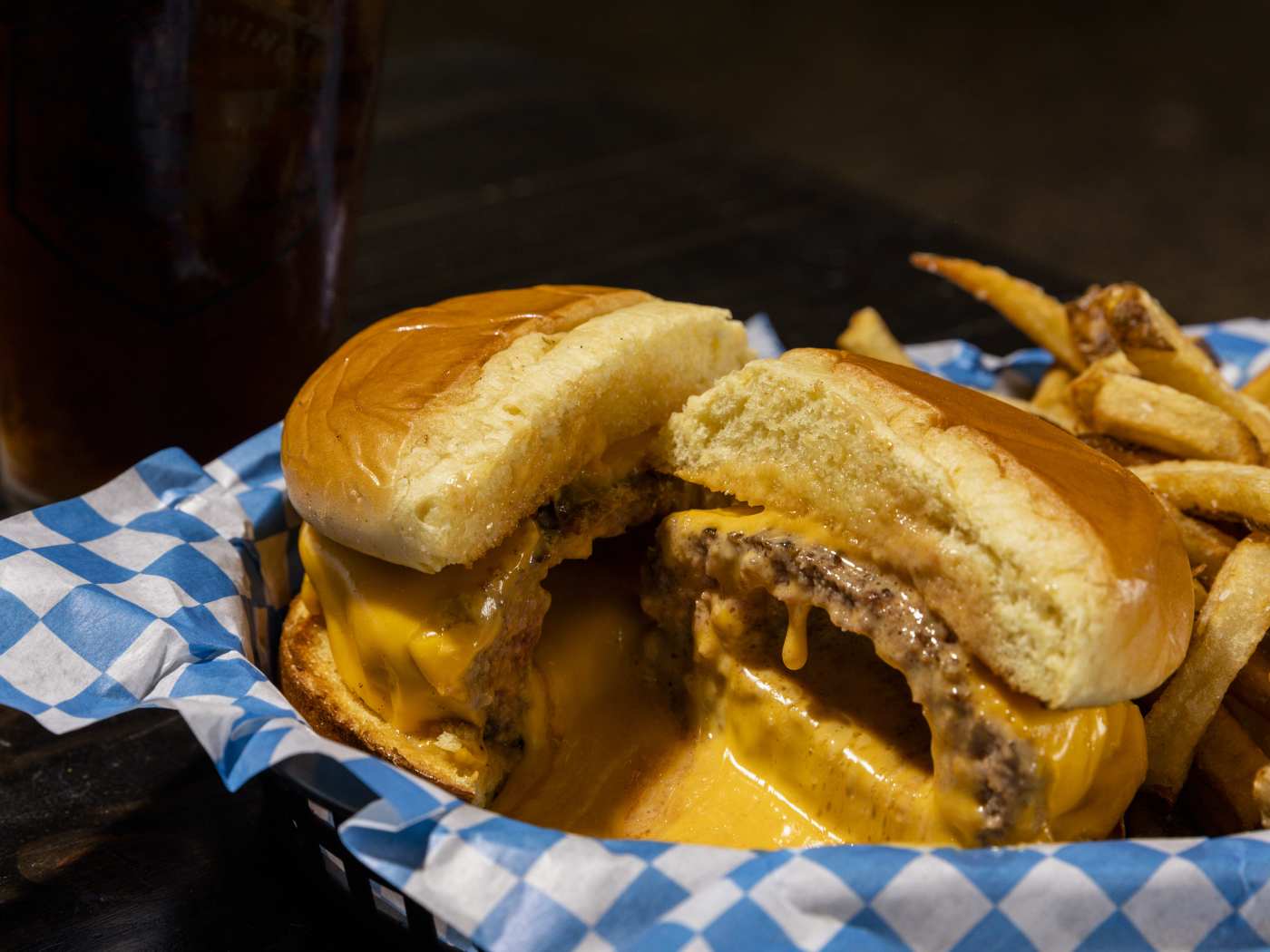 "Why settle for a cheese-stuffed burger when you can get one topped with even more cheese? That’s precisely what you’ll find at Peppers & Fries, an over-the-top baseball-themed sports bar that repurposed a ballpark scoreboard as wall decor and uses chain link fencing to divide the room. Don’t let the extra slice of cheese fool you into thinking that they’re skimping on the main event, though, since the burger has the densest, cheesiest center in town. The fries are good, but we like to mix things up by pairing a lucy with a side of tortilla chips and freshly-made salsa—in addition to burgers, Tex-Mex cuisine is a house specialty. On warm days, the restaurant’s glass garage doors open onto a sunny, low-key patio." - stacy brooks