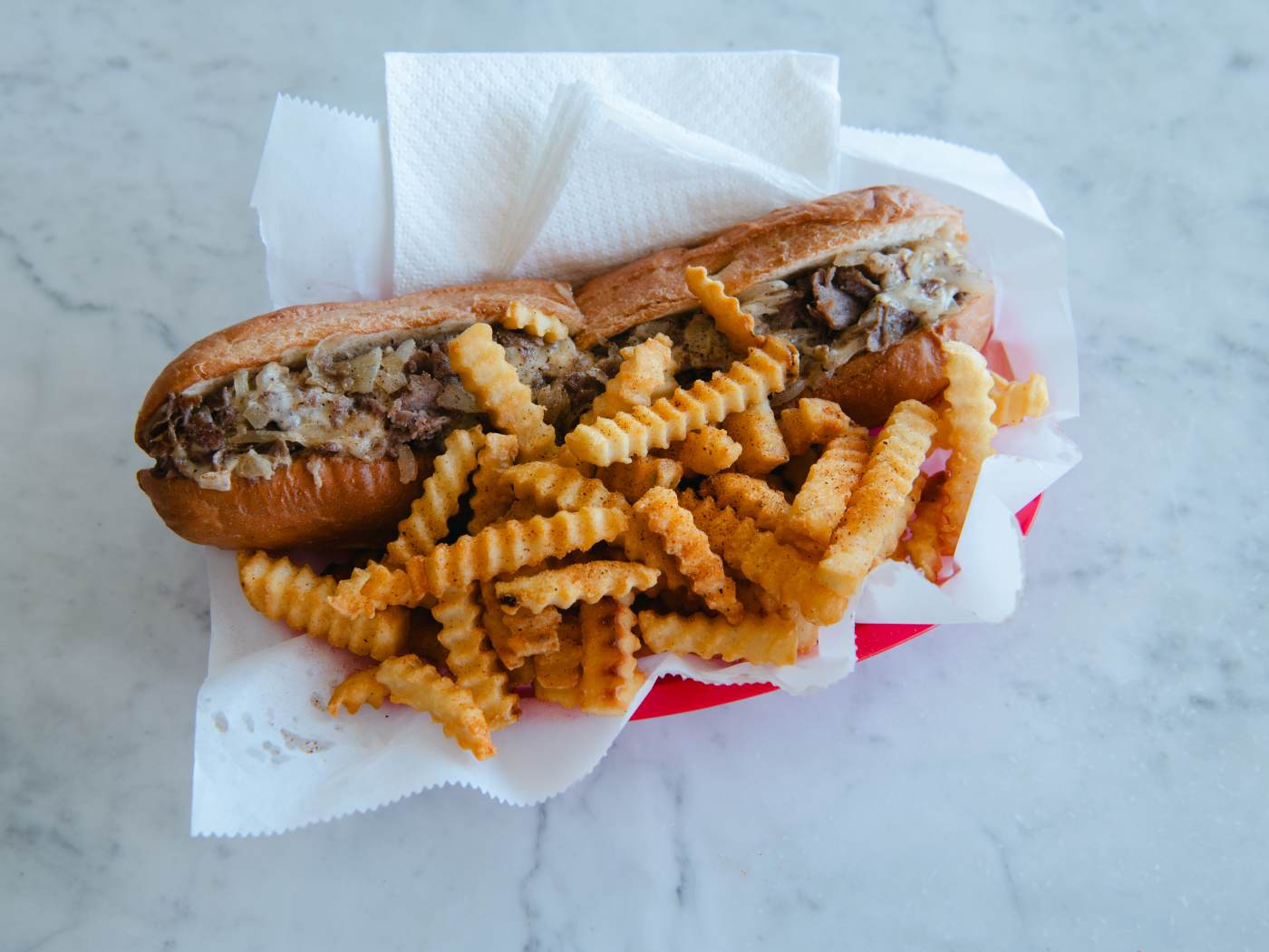 Philly Cheesesteak Place is a no-frills, counter eatery celebrating the sandwich (specializing in hoagies, cheesesteaks, and burgers). The eatery is located in Morningside’s Cheshire Pointe Shopping Center, located at the intersection of Cheshire Bridge and Faulkner Roads and MARTA-accessible via the 27 bus.