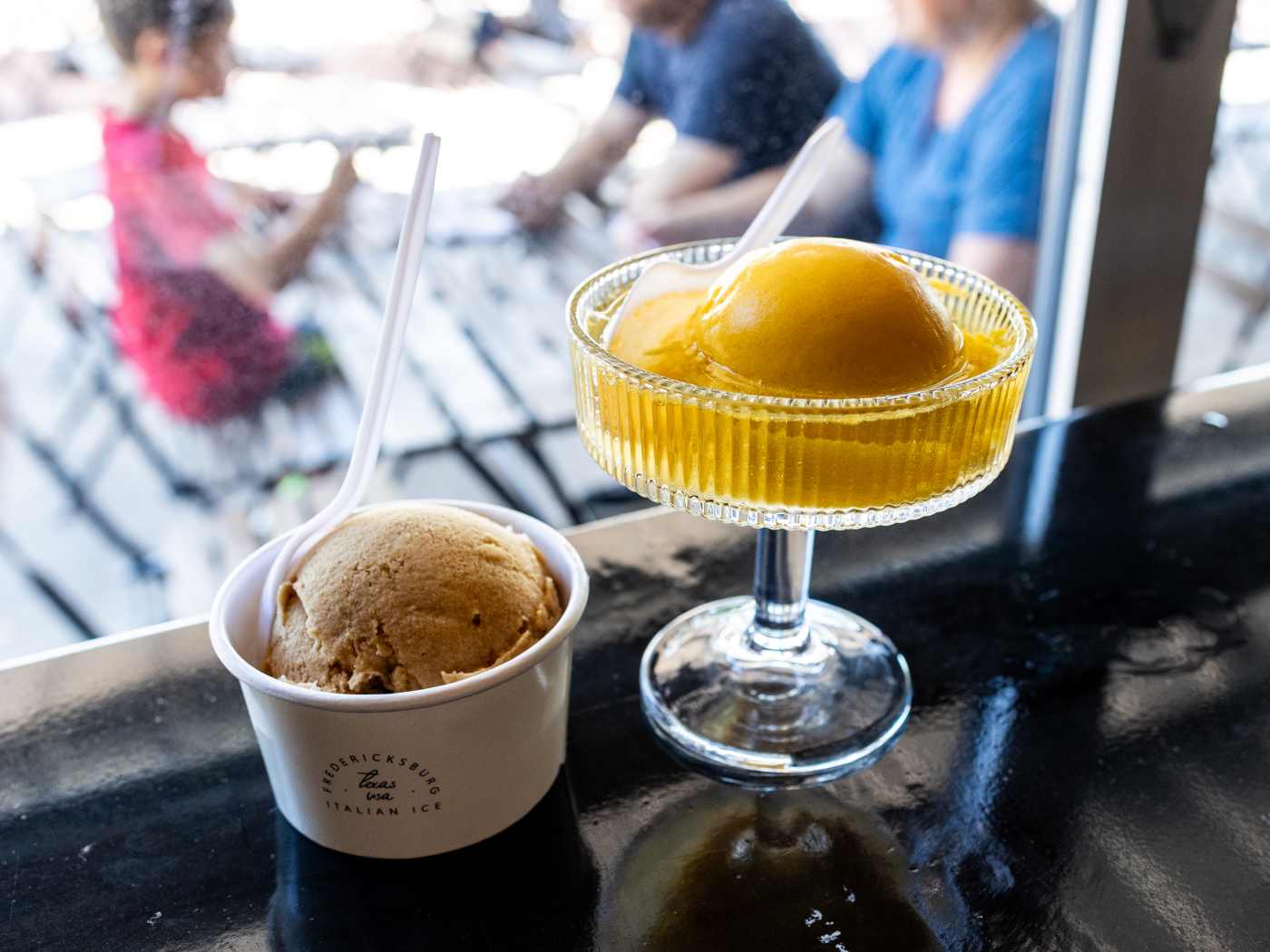 Surrounded by local orchards, growers, and a buzzing wine industry, Christina Harman, founder, seized the opportunity to transform her vision into reality in 2021, by purchasing an obscure vehicle sight-unseen on Instagram. With sheer determination and an ethos of embracing opportunities first, she learned how to make Italian Ice, similar to granita served in Italy, and served all over the Hill Country for two years. In 2023, with the help of many, she opened the doors to Piccolina on one of the busiest corners of Main Street, housed in a retrofitted 1950’s gas station that perfectly complements the charm of the original truck.