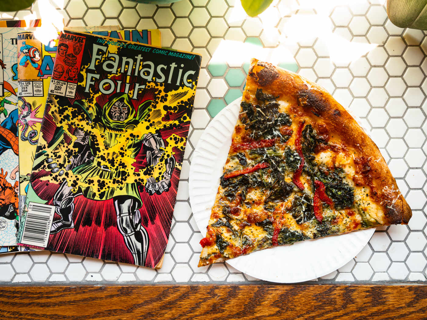 "At Pizza Richmond, a walk-in only pizza shop in Port Richmond, the throwback board games, Spiderman comics, and tube TV transports you to the time of Walkmans and neon tracksuits. A bite of their thick, saucy tomato pie, meanwhile, takes you on a trip to bubbly, bready heaven. The red tomato sauce is rich, sweet, and savory, and each slice has beautifully charred edges. TL;DR: it's delicious." - candis mclean